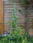 Im Sommer leuchten die hellgrünen ovalen gegenständig an der Achse sitzenden Blattpaare. Dann lieb ich sie. Dann reckt sie ihre schlanken Tentakeln in die Luft. Ihr angekündigtes Wachstum wird sie nach ihren jährlichen 30 Zentimetern dann bei rund zwei Metern anhalten. Hoffentlich!